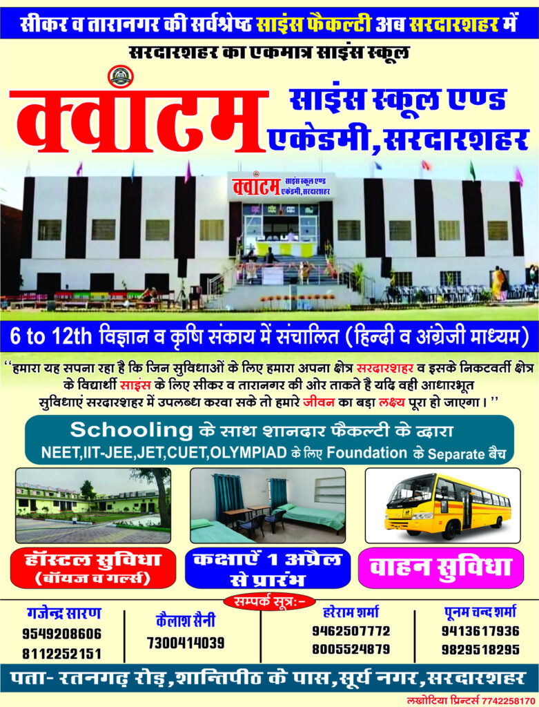 Quantum Science School & Academy was founded with a vision to transform the educational environment of Sardarshahar. Our goal is to provide students with top-quality science education, guided by experienced and passionate educators who understand the needs of today’s competitive environment.